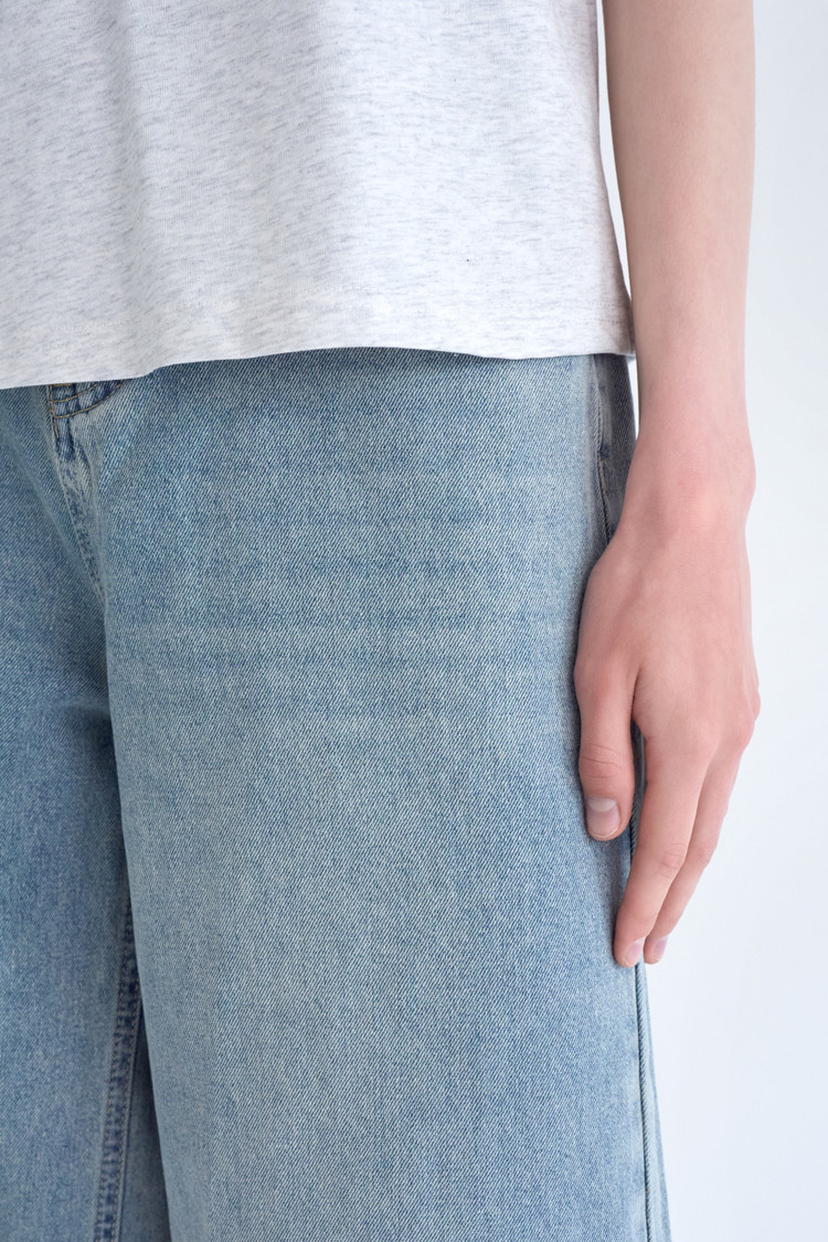 부드러운 워싱데님 와이드핏 7부 청바지애요.