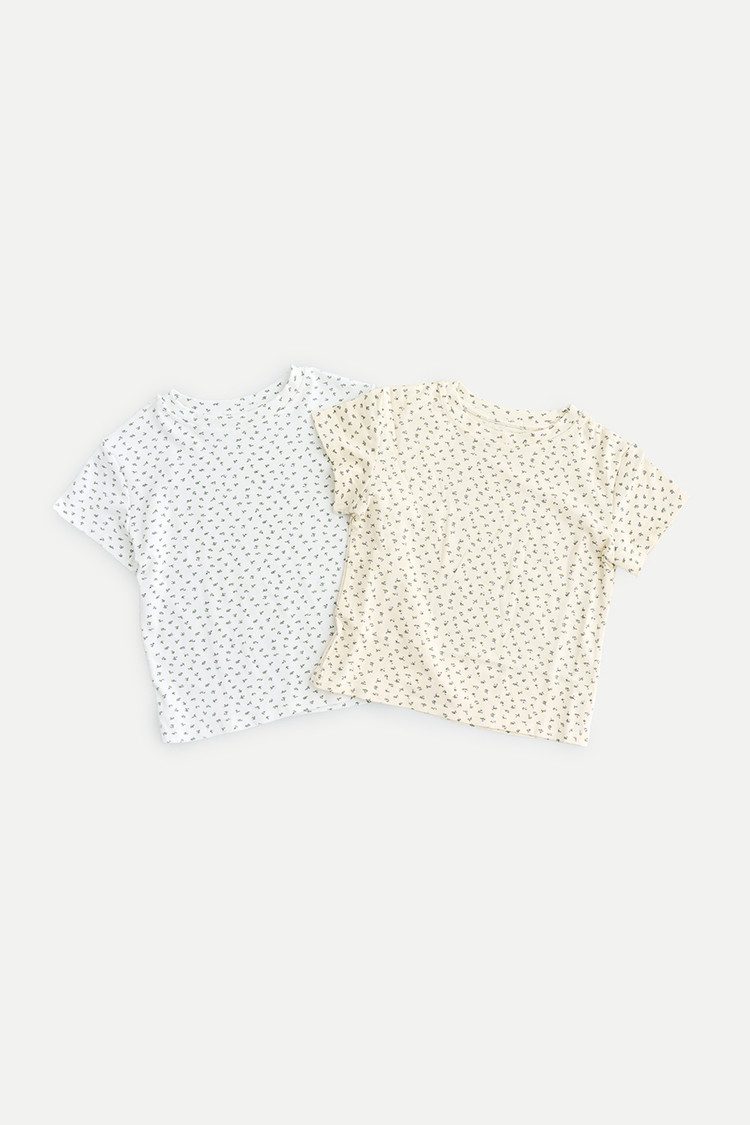 플라워 크롭 미니 레이어드 반팔 티셔츠 (2 colors)SALE