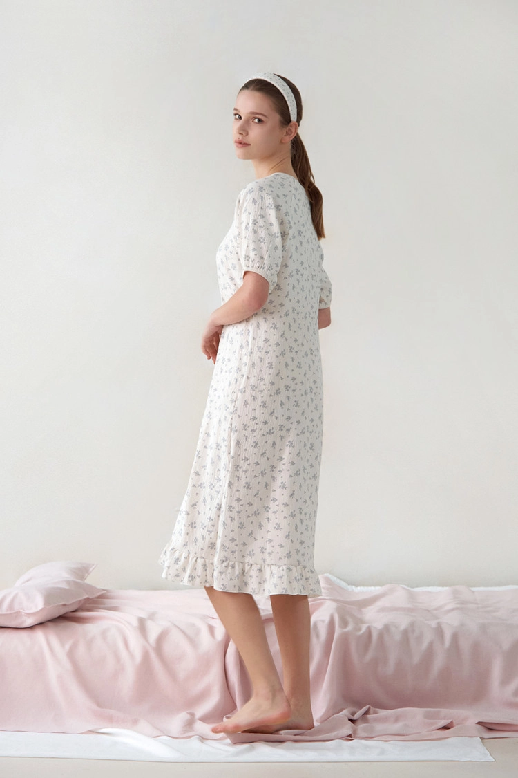 플라워 소프트 반팔 원피스잠옷SALE